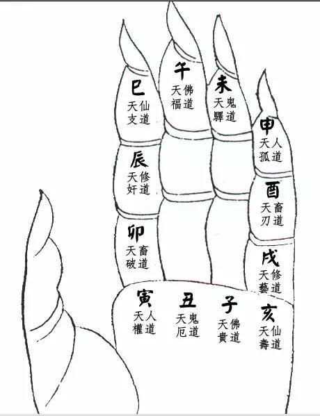 十二辰文的掐法如下: